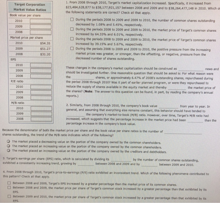 Solved 6. An assessment of Target Corporation's market value Target Corp Financial Ratios Includes losses on early retirement of debt of $512 million and $10 million for 2020 and 2019, respectively. View tgt financial statements in full, including balance sheets and ratios. ten years of annual and quarterly financial ratios and margins for analysis of target (tgt). Balance sheet, income statement, cash flow, earnings & estimates, ratio and margins. find out. Target Corp Financial Ratios.